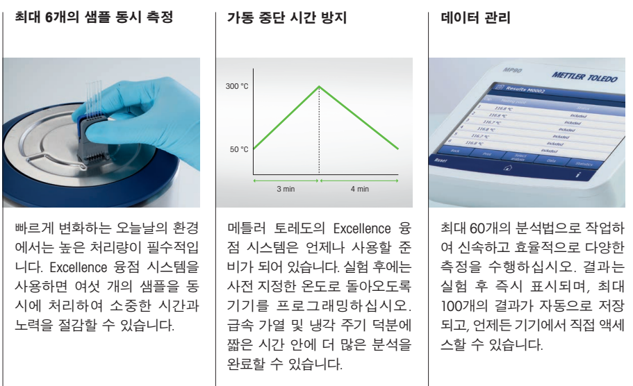 - 동시에 최대 4개의 샘플을 분석할 수 있어 생산성이 크게 증가.
